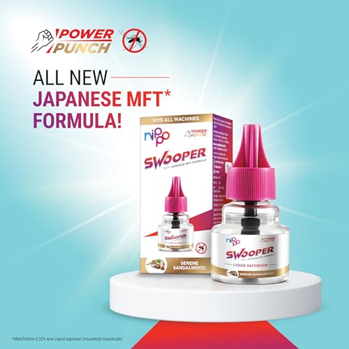 Nippo Swooper Liquid Vaporizer I Mosquito Repellent Machine+2 Refill(45ml) with 2 AAA Batteries Free I Sandalwood Fragrance I Japanese MFT Formula I Kills Dengue, Malaria & Chikungunya Mosquitoes