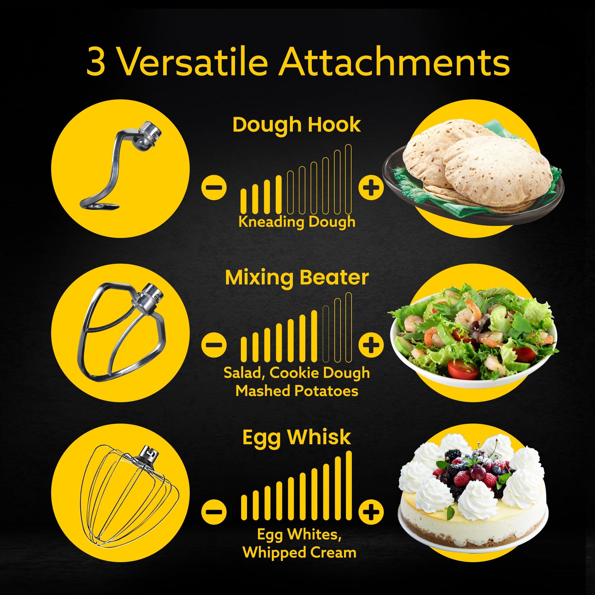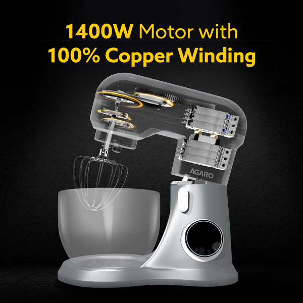 AGARO Elegant Stand Mixer, 1400W with 5.5L SS Bowl, 10 Speed Settings, Pulse Function, 100% Copper Motor, Includes Whisker, Beater, Dough Hook, Dark Grey