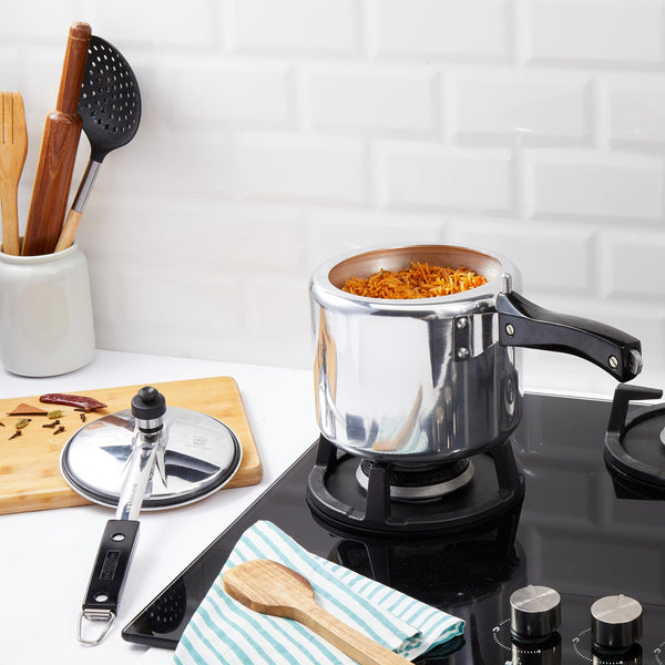 Amazon Brand - Solimo - Sleek Induction Bottom Aluminium Pressure Cooker - 3 Liter (Inner Lid), Silver