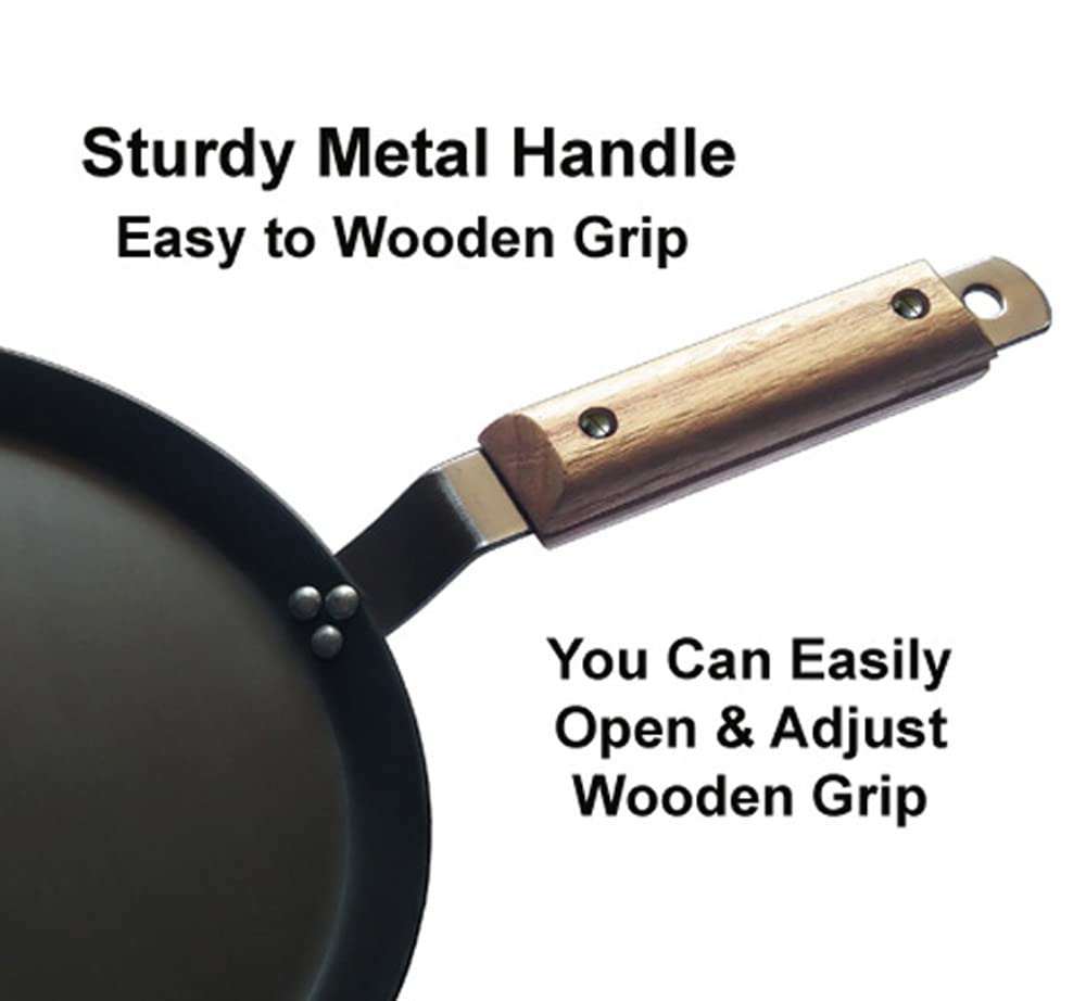 amicus Kitchen Premium Iron Tawa for Dosa Roti Chapati, Flat Iron Tava with Wooden Handle, Induction Friendly,10 Inch,1.2 Kg, Black