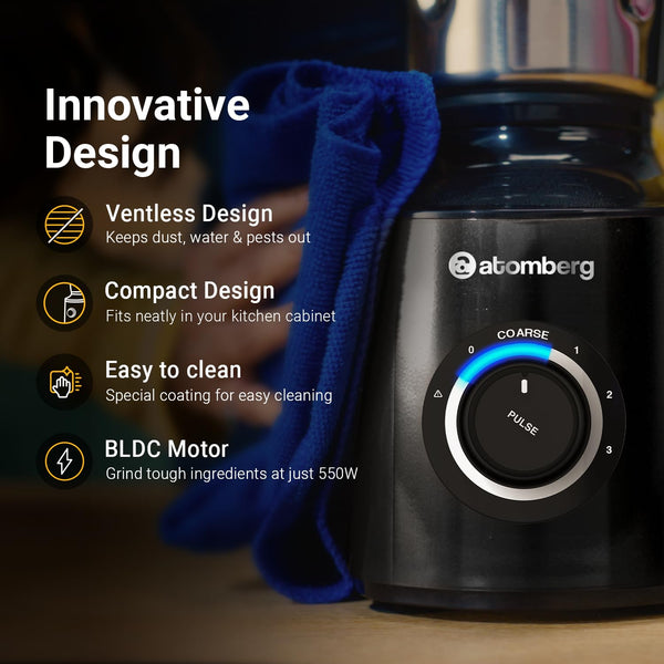 Atomberg Zenova Mixer Grinder with Unique Coarse Mode | Advanced Safety Features | 4 Jars including Chopper Jar with Hands Free Operation (Black)