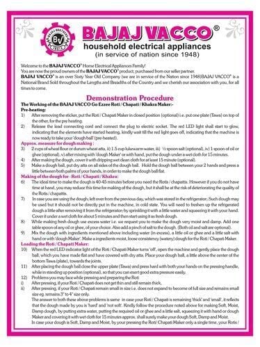BAJAJ VACCO Go-Ezzee Chapati/Roti/Khakhra Maker C-02 Wattage 900, Stainless Steel, Black, 900w
