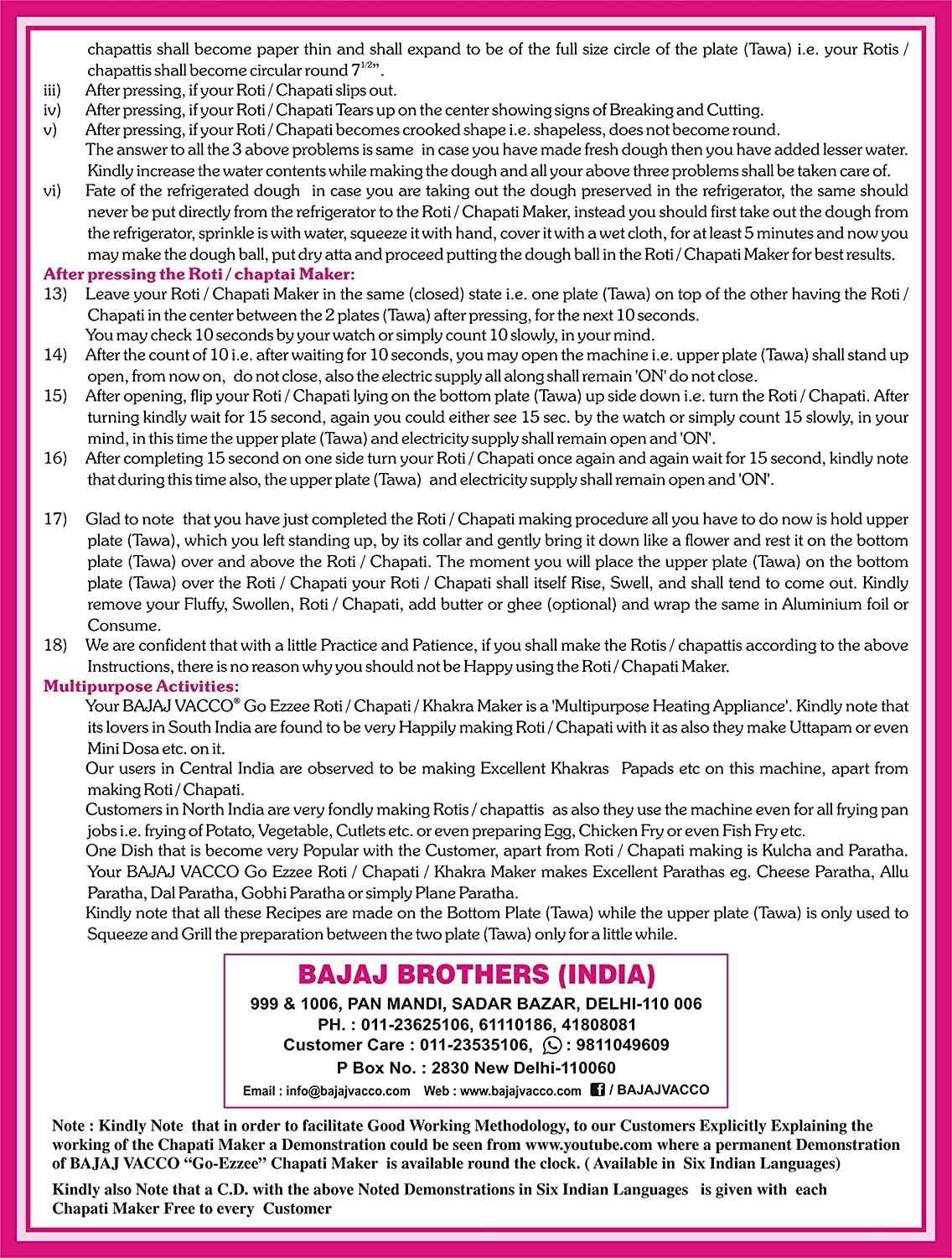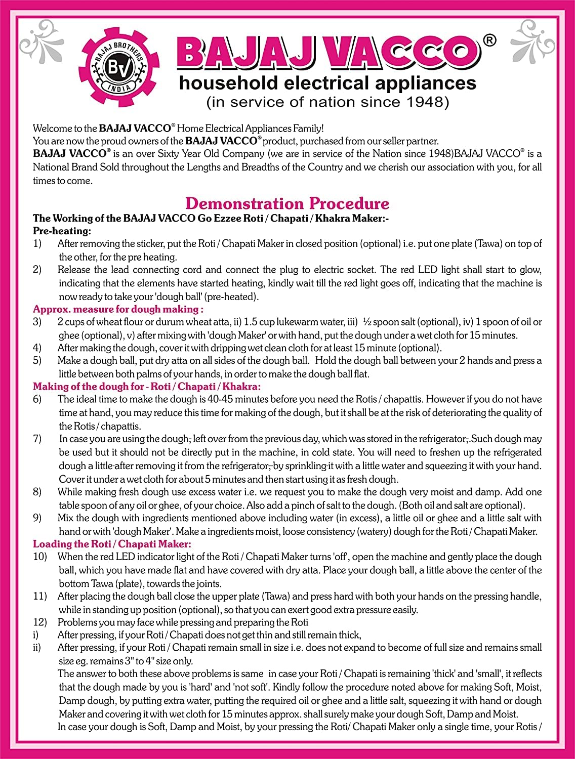 BAJAJ VACCO New Go-Ezzee Chapati/Roti/Khakhra Maker, Mc-02 - Marble (Spatter) Nonstick Coating Wattage 900 Watts, Stainless Steel