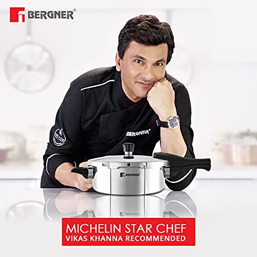 Bergner Argent Elements Triply 2.5 Litres Stainelss Steel Pressure Pan with Triple Safety System, Easy to Use & Hold Handles, Extra locking system