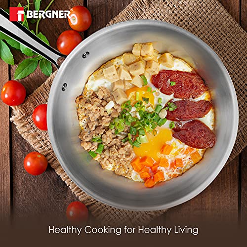 BERGNER Argent TriPly 20 cm Frypan/Steel Pan, Scratch Resistant, for Spice Tempering/Seasoning, Stay Cool Long Handle, Mirror Finish, Induction Ready, 5-Year Warranty by Bergner