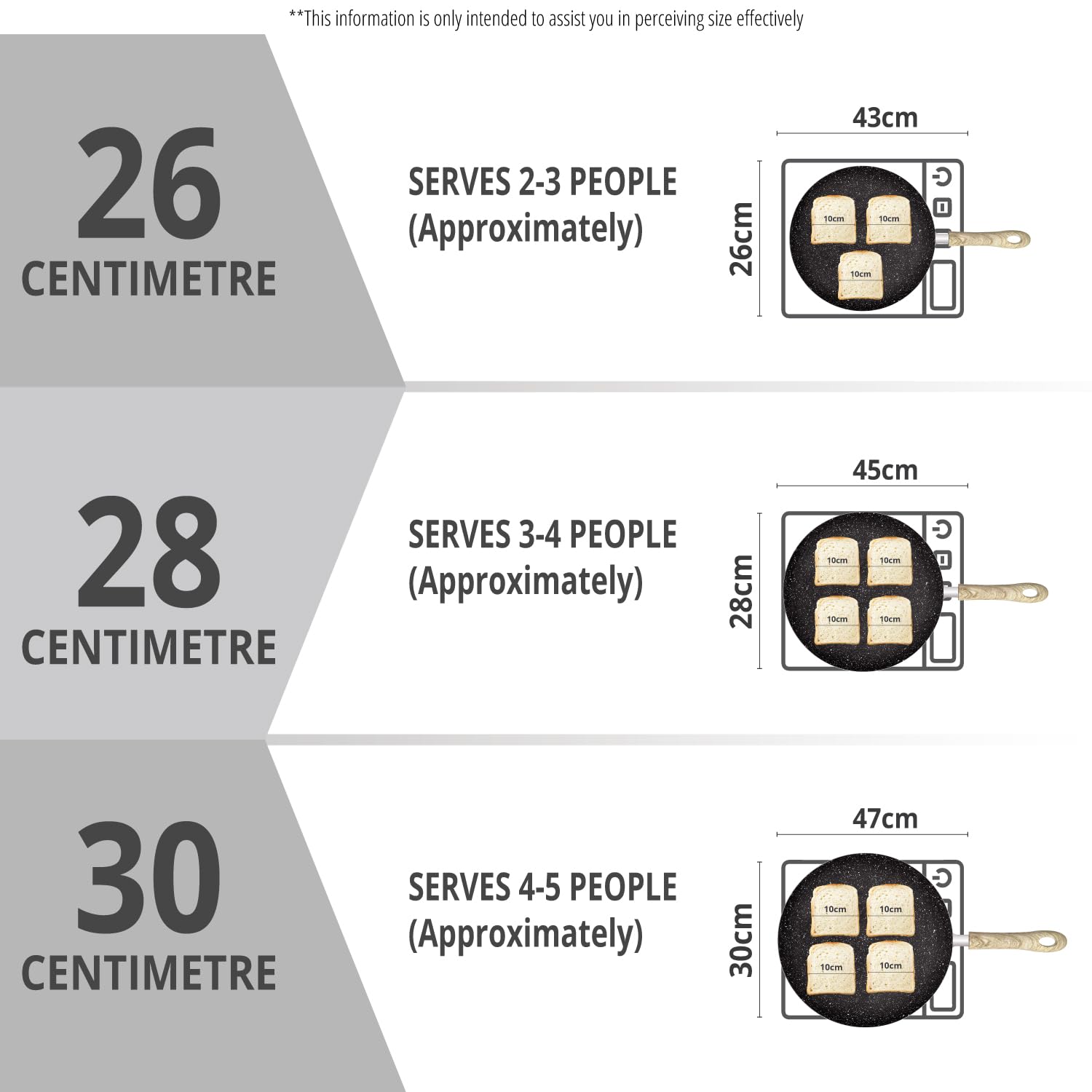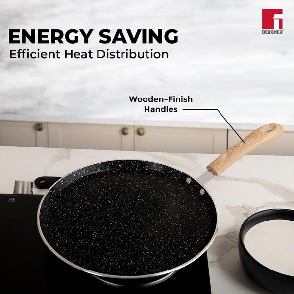 Bergner Bellini Plus Aura 5-Layer Non-Stick 28 cm Dosa Tawa, Soft Touch Wooden Finish Handle, Food Safe, PFOA Free, Even Heat Distribution, 4mm Thickness, Induction Bottom, 1-Year Warranty - Black