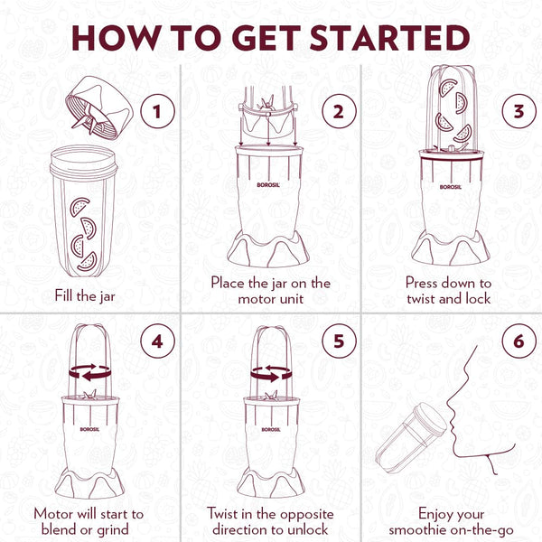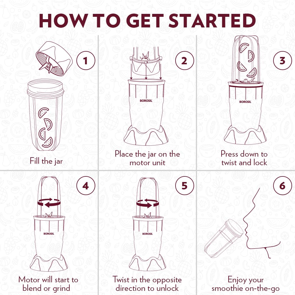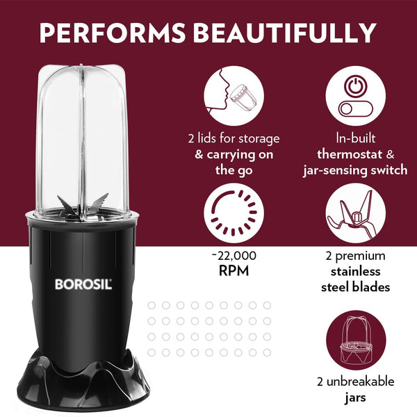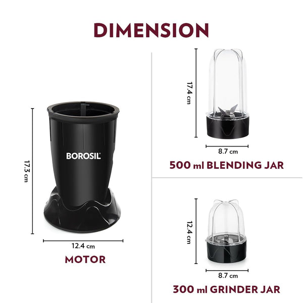 Borosil NutriFresh Portable Mini-Blender & Grinder, 500 ml Blending Jar, 300 ml Chutney Jar, For Blending Smoothies & Chutneys, Dry Grinding Spices, Black, 400 W