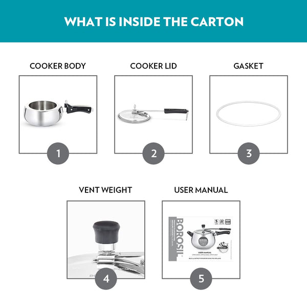Borosil Pronto 1 L Inner Lid Stainless Steel Pressure Cooker | 6.8 mm Thick Base, Even Heat Distribution | Gas & Induction Campatible | 5 Years Warranty
