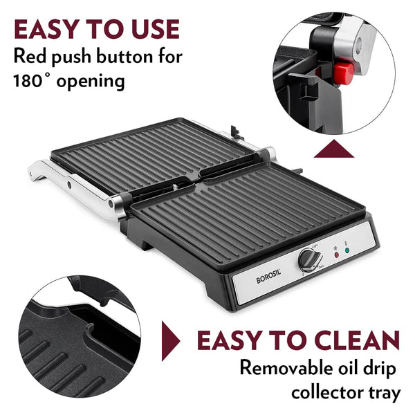 Borosil Super Jumbo Grill Sandwich Maker | Can Make 4 Sandwich At a Time | 2000W Electric Toaster Maker | Non-Stick Coating Plates Opens to 180°, BPA & PTFE Free | Power Indicators | 2 Year Warranty