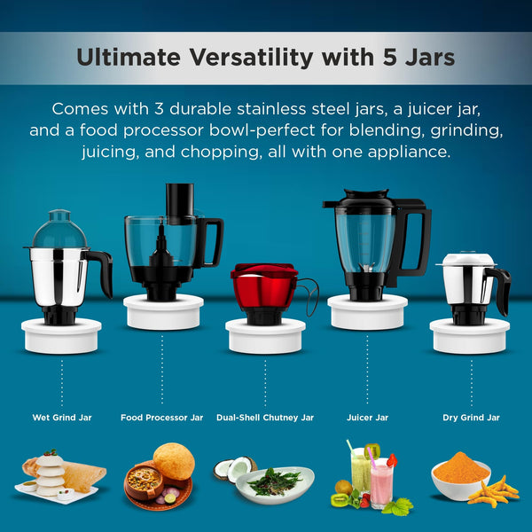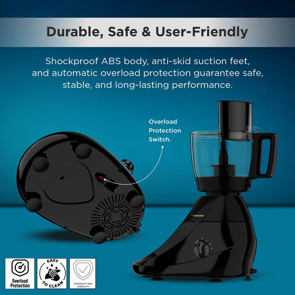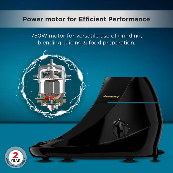 Butterfly Vertex 750W Food Processor | 3 SS Jars, 1 Juicer Jar & 1 Food Processor | Atta kneaker & Veggie Chopper | 1 Dual Shell Jar with AirGap Cooling Technology