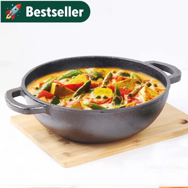 CASTrong Cast Iron Kadai,Pre-seasoned, Nonstick, 100% Pure, Toxin-free, Induction, 25.4cm,2.3L, 2.51kg