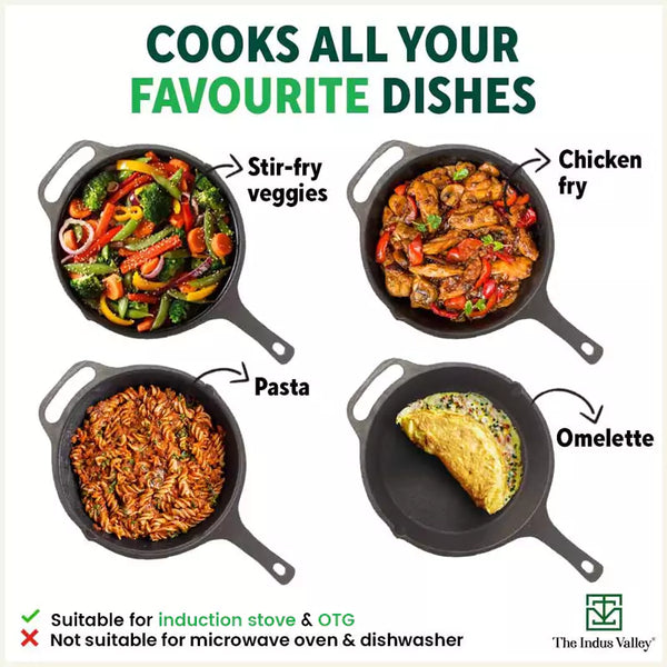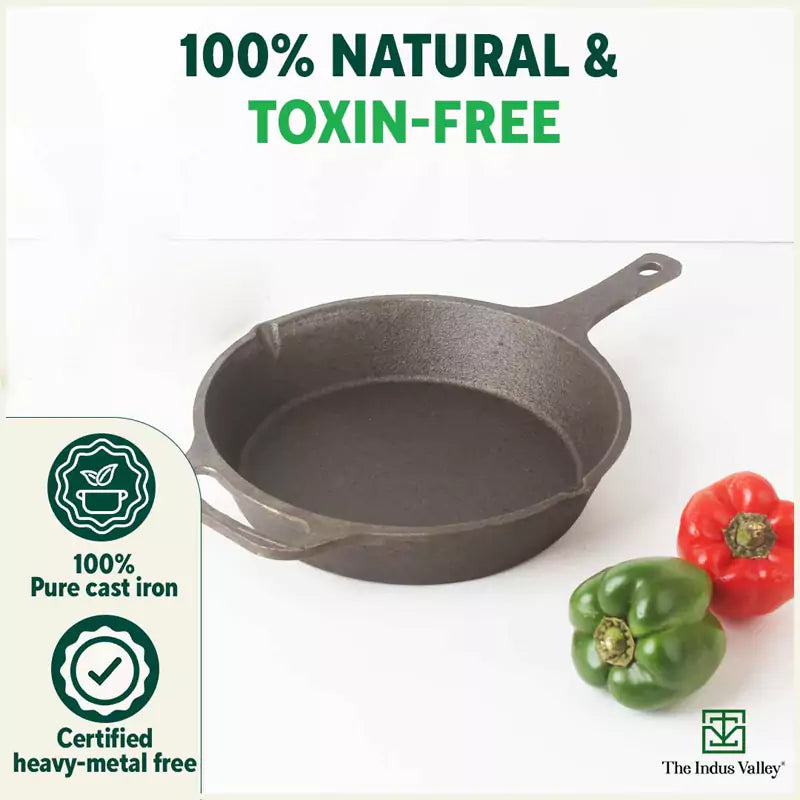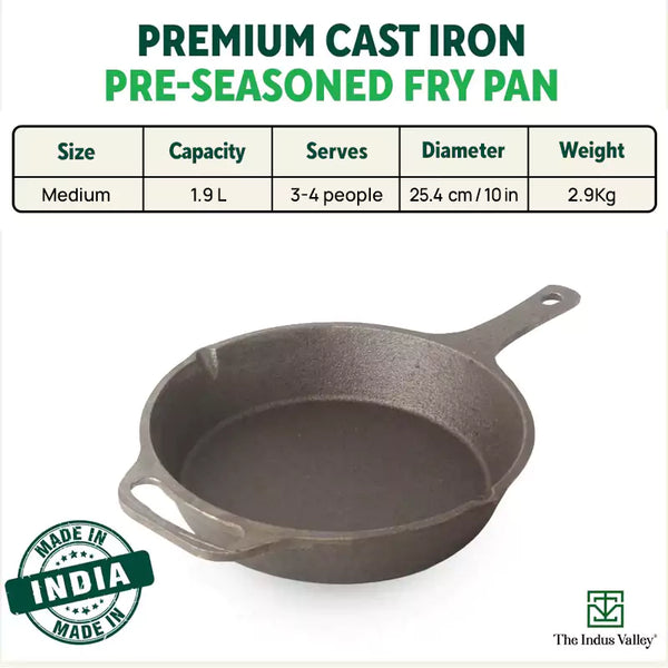 CASTrong Cast Iron Fry Pan, Pre-seasoned, Nonstick, 100% Pure, Toxin-free, Induction, 25.4cm, 1.9L, 2.9kg