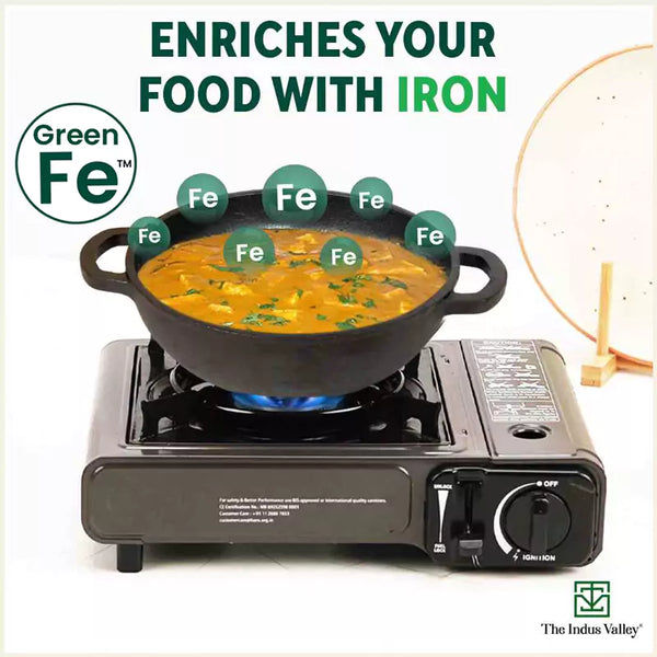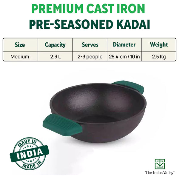 Cast Iron Kadai, Seasoned, Nonstick, 100% Pure, Toxin-free, Induction, 25.4 cm, 2.3 L, 2.5kg