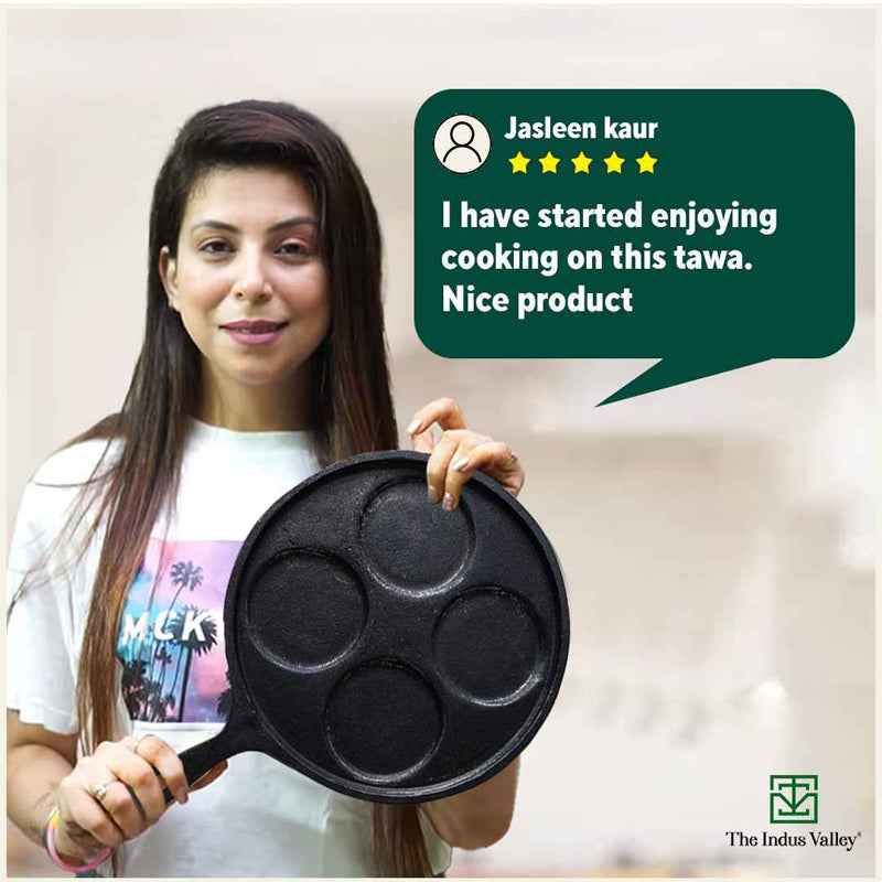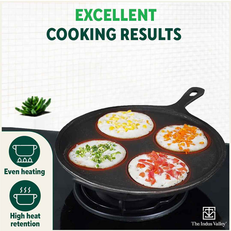 CASTrong Cast Iron Uttapam/ Set Dosa Tawa, 4 Pit,Pre-seasoned, 100% Pure, Toxin-free, Induction, 27.5cm