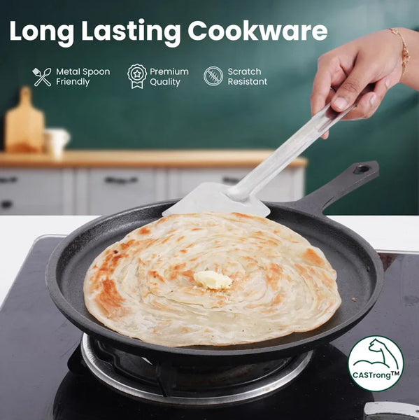 CASTrong Cast Iron Cookware Set: Free ₹400 Tadka Pan + Cast Iron Tawa With Handle (Pre Seasoned) + Cast Iron Kadai Wok Model + Cast Iron Fry Pan, Kitchen set for Home, 100% Pure, Toxin-free