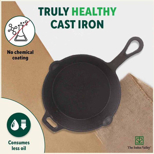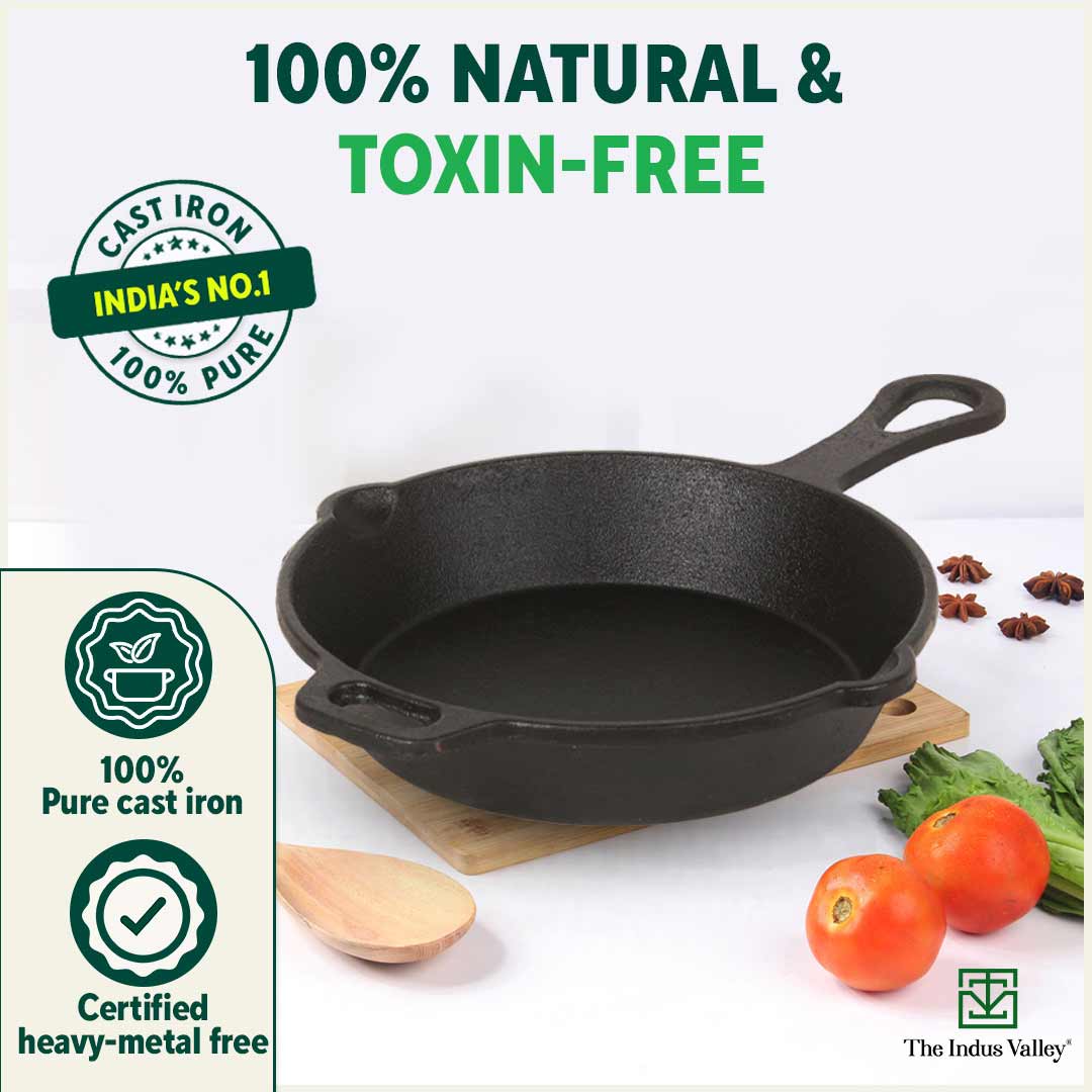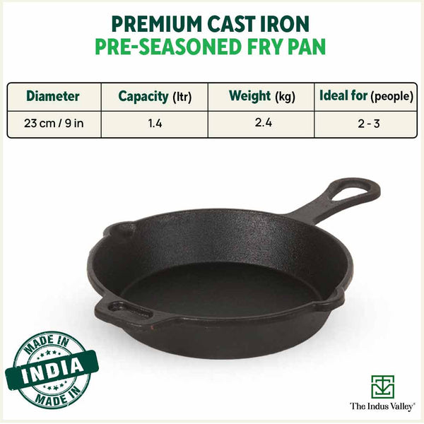 CASTrong Cast Iron Fry Pan/Skillet,Pre-seasoned, Nonstick, 100% Pure, Toxin-free, Induction, 23cm, 1.4L, 2.4kg