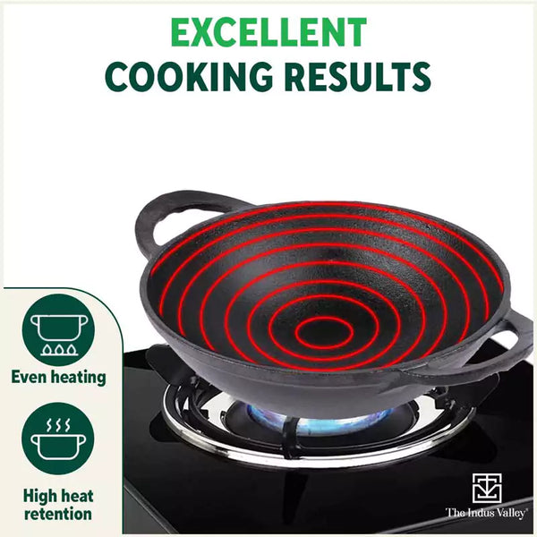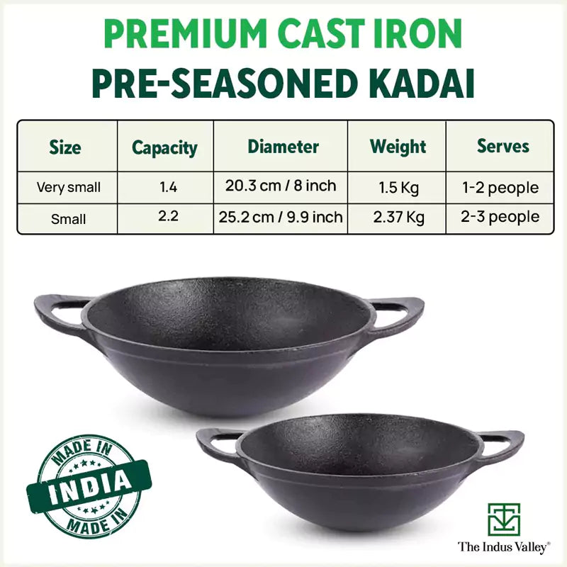 CASTrong Cast Iron Kadai, Pre-seasoned, Nonstick, 100% Pure, Toxin-free, 20.3cm, 1.4L, 1.5kg