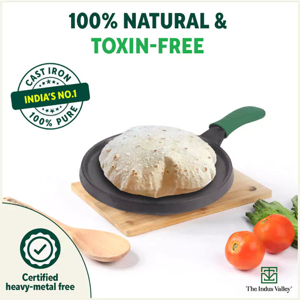CASTrong Cast Iron Tawa, Silicon Handle,Pre-seasoned, Nonstick, 100% Pure, Toxin-free, Induction, 25.5cm, 2.2kg