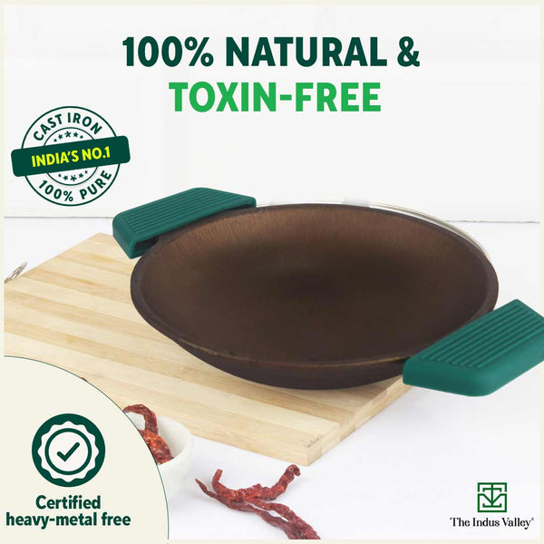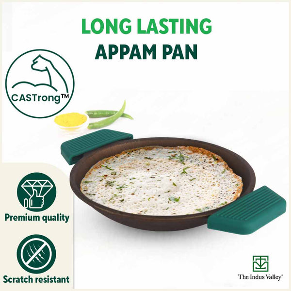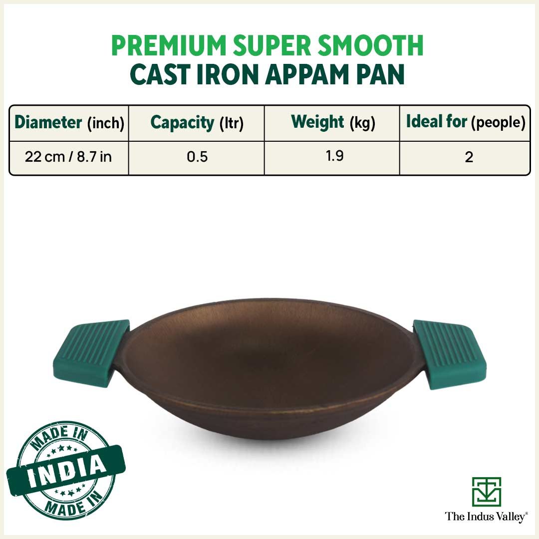 CASTrong Super Smooth Cast Iron Appam Pan/Appachetty, Silicon Handle,Pre-seasoned, Nonstick, 100% Pure, Toxin-free, 22cm, 1.9kg