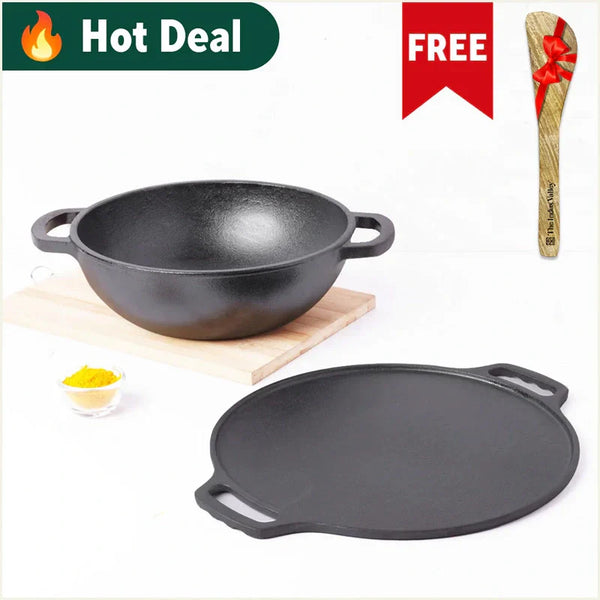 CASTrong Thick Cast Iron Kadai+Tawa+Free ₹110 Spatula,Kitchen set for Home, Pre-seasoned,100% Pure,Toxin-free