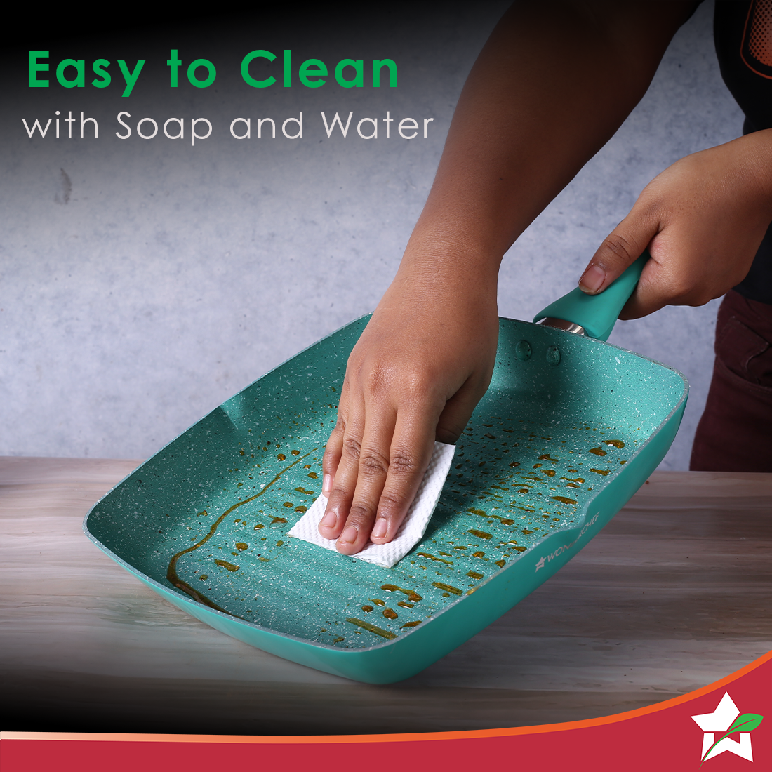 Wonderchef Renewed Celebration Non-stick 24cm Grill Pan | Induction Friendly | Soft Touch Handle | Pure Grade Aluminium | 2.2mm | PFOA/Heavy Metals Free