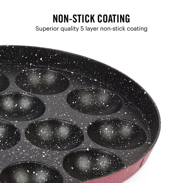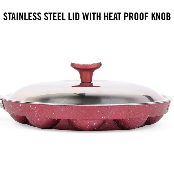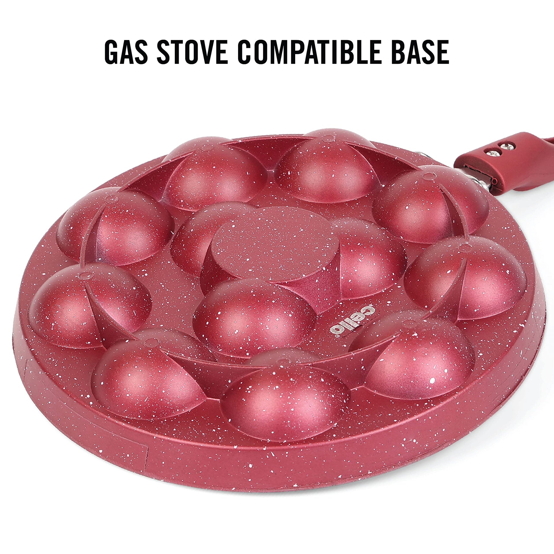 CELLO Crown Single Handle Appam 12 Cavity -Maroon (Aluminium)