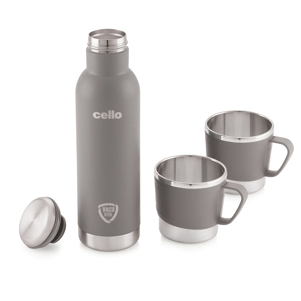 Cheer-Up Vacusteel Flask with Mugs Gift Set, 3 Pieces