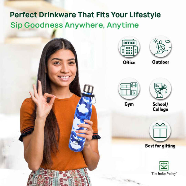 Premium Stainless Steel Camo Printed Vacuum Insulated Water Bottles, Cola Shaped, 1 Litre
