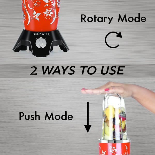 Cookwell Bullet Mixer Grinder (5 Jars, 3 Blades, Red) - Copper, 600 Watts - 2 Years Warranty