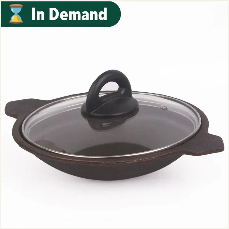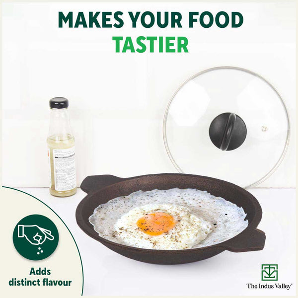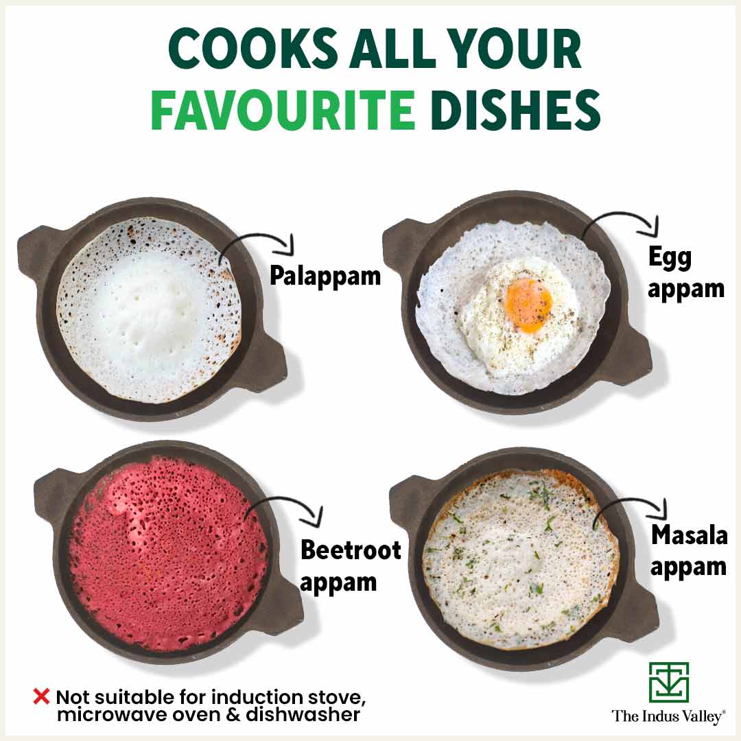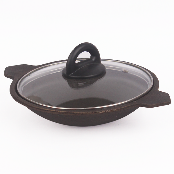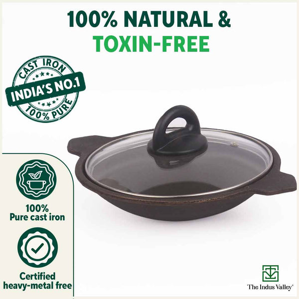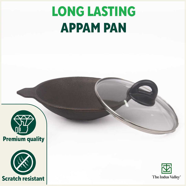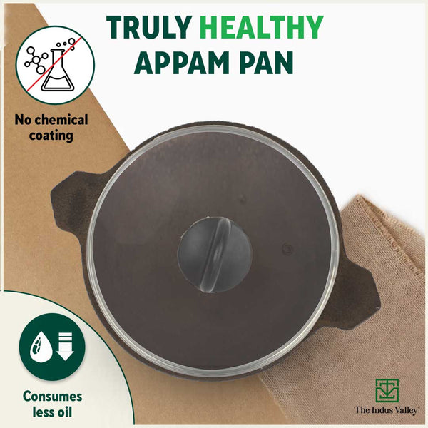 CASTrong Cast Iron Appam Pan/Appachetty, Glass Lid, Pre-seasoned, Nonstick, 100% Pure, Toxin-free, Induction, 22cm, 1.5kg