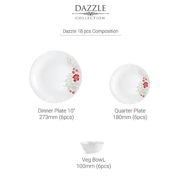 Dazzle Series 18 Pieces Opalware Dinner Set for Family of 6