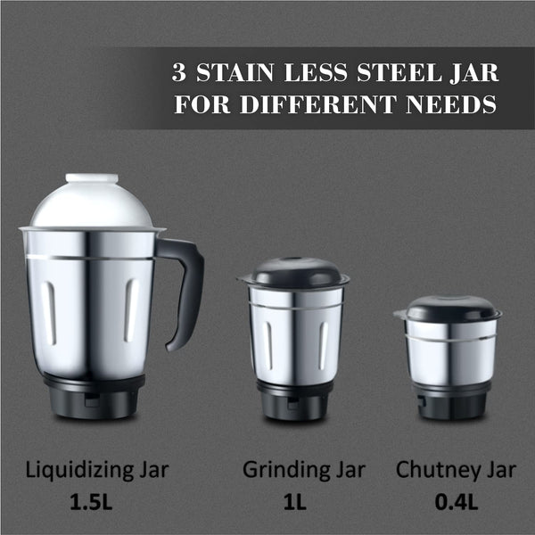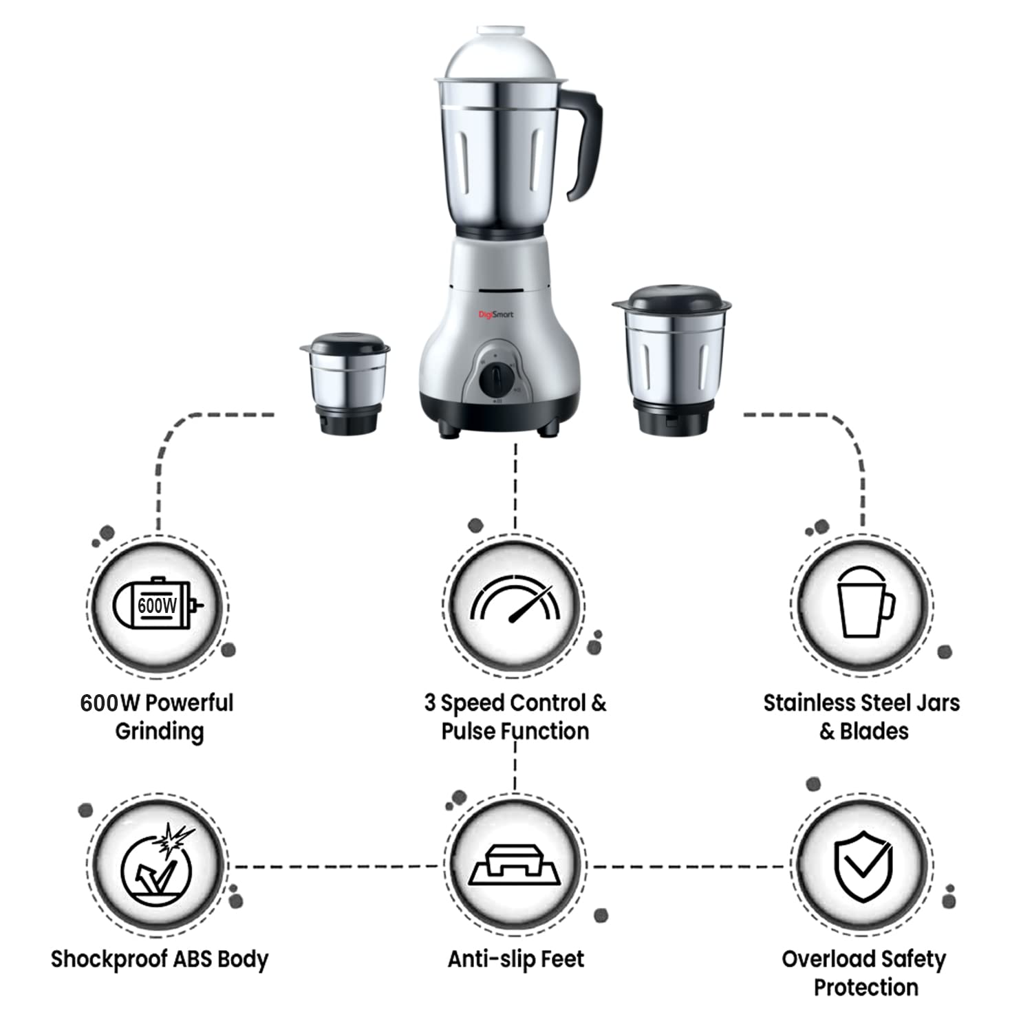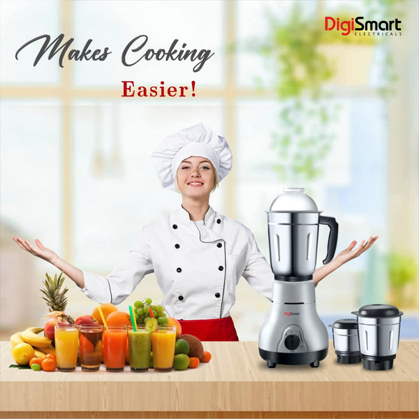 DigiSmart Kitchen Mate 600 Watt Mixer Grinder Gray and Black | 3 Jar | Comes With 2 Year Warranty