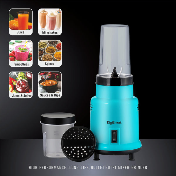 DIGISMART Nutri Mixer Grinder With 2 Jar | 500 Watt | Long Lasting Shock Proof Abs Body | Heavy Duty Motor Multi Purpose Blade Come With 1 Years Warranty (Blue)
