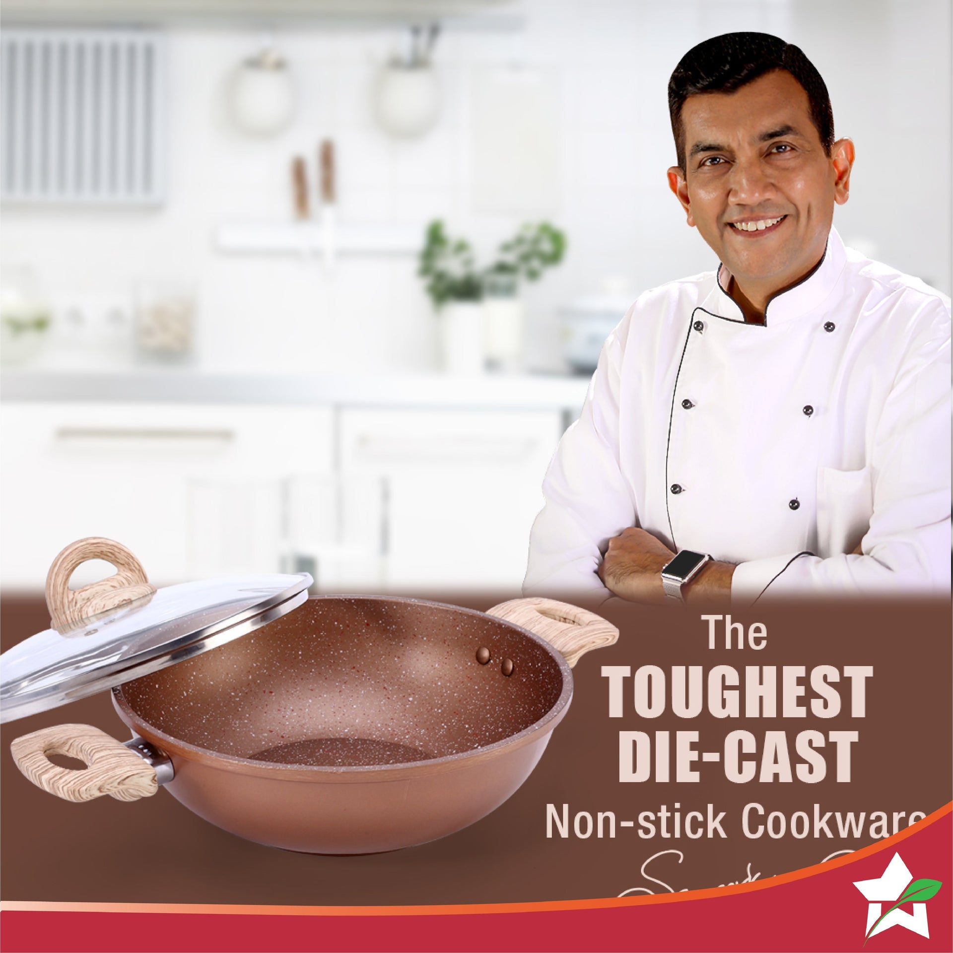 Duralife Die-cast 24 cm Kadhai with lid | 5 Layer Healthy Duramax Non-Stick Coating | Soft Touch Handles | Pure Grade Aluminium | PFOA Free | 2.5 litres | 2 Year Warranty | Copper