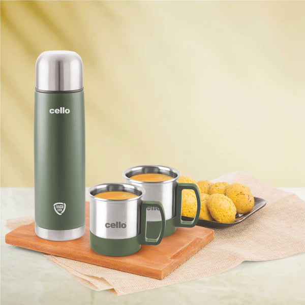 Duro Classic Vacusteel Flask with Mugs Gift Set, 3 Pieces