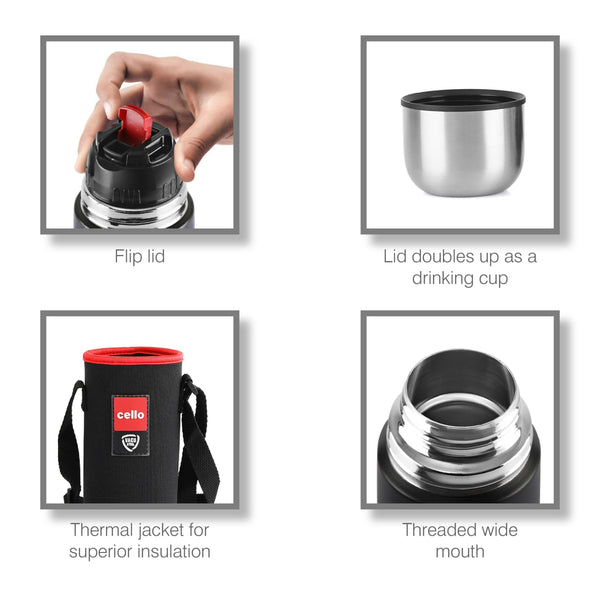 Duro Flip Flask, Vacusteel Water Bottle with Thermal Jacket, 500ml