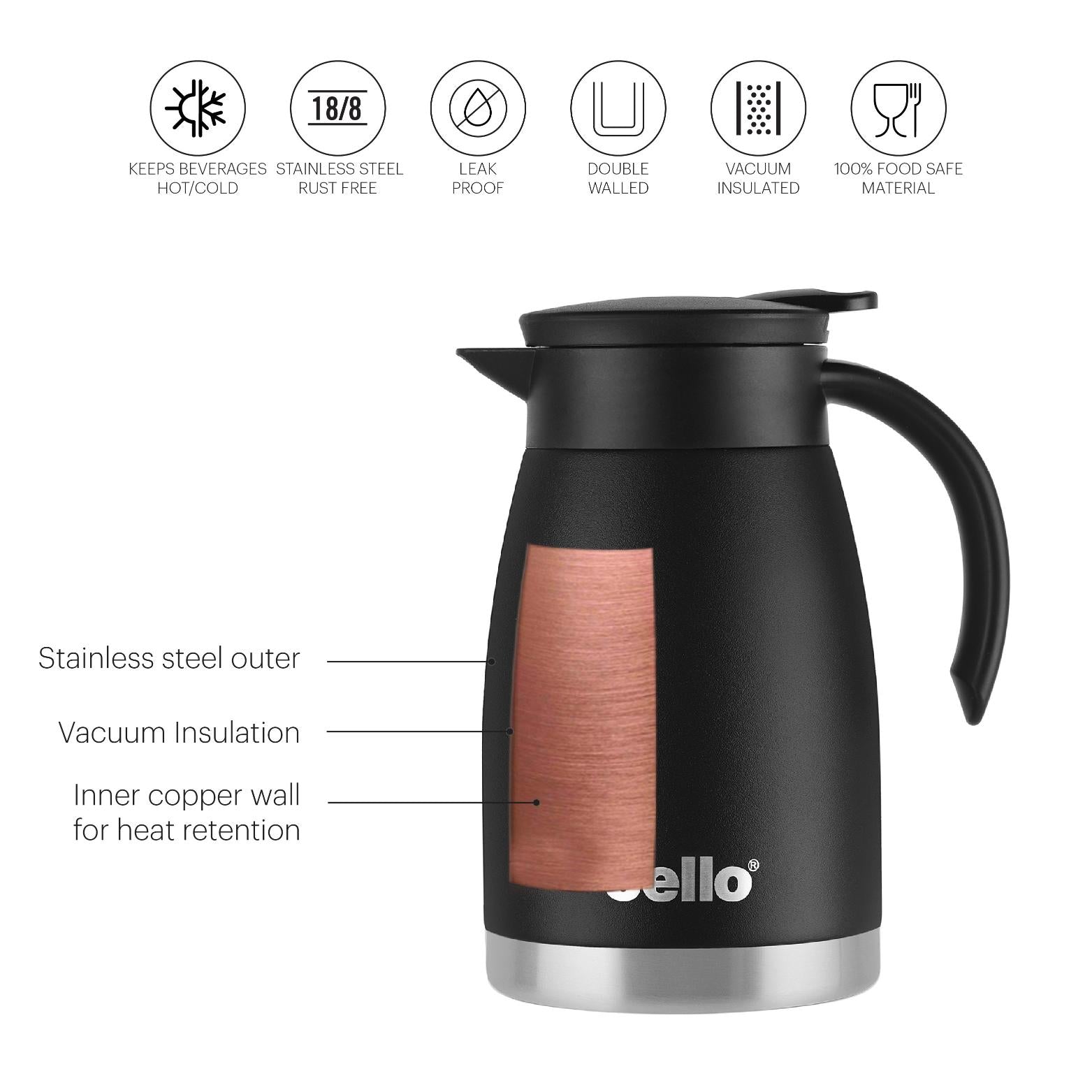 Duro Pot Double Walled Vacuum Insulated Teapot, 800ml