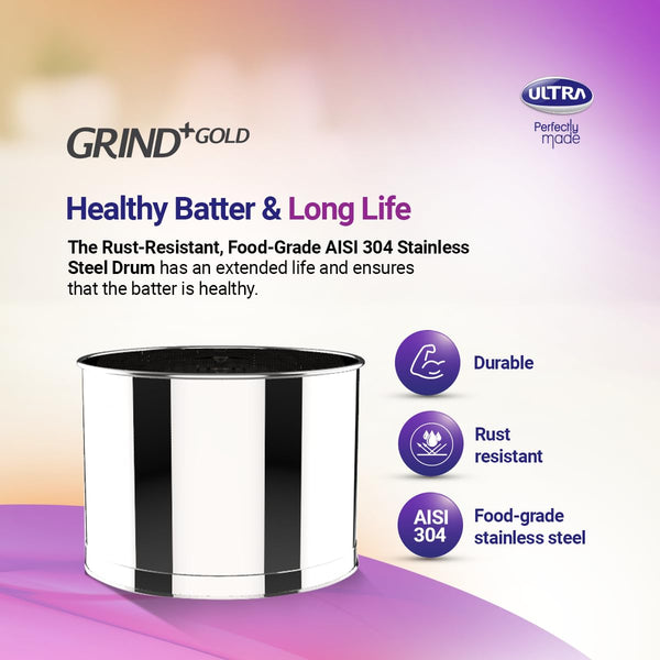 Elgi Ultra Grind+ Gold Table Top Wet Grinder, 2L (White/ Purple)
