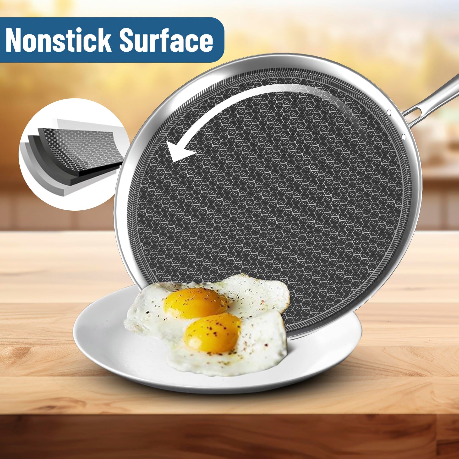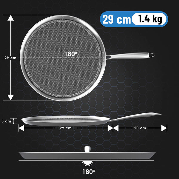 Esspy 11.5inch/29cm Triply Non Stick Dosa Tawa | Stainless Steel Tawa for Dosa | Tawa for Roti/Chapati/Paratha | Metal Spatula Friendly, 4.0 mm Thick, Honeycomb Pattern, Riveted Handle, Food Safe