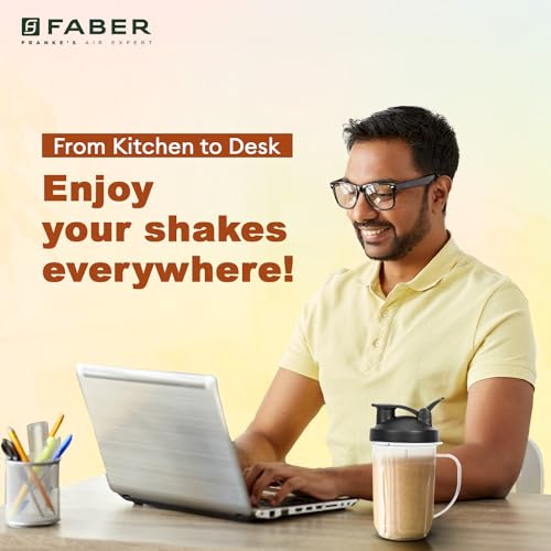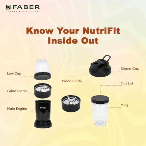 Faber Sportz Blender FSB 3-in-1 Nutrifit Nero|Mixer Grinder Blender|400W|100% Copper Motor|Detachable SS Blade|3 PC Jar 500ML+300ML+500ML Mug|Wet, Dry Grinding|Nutri Blender|2 Year Warranty by Faber
