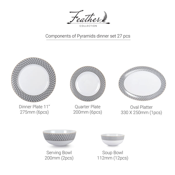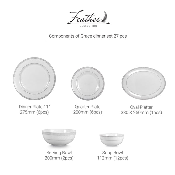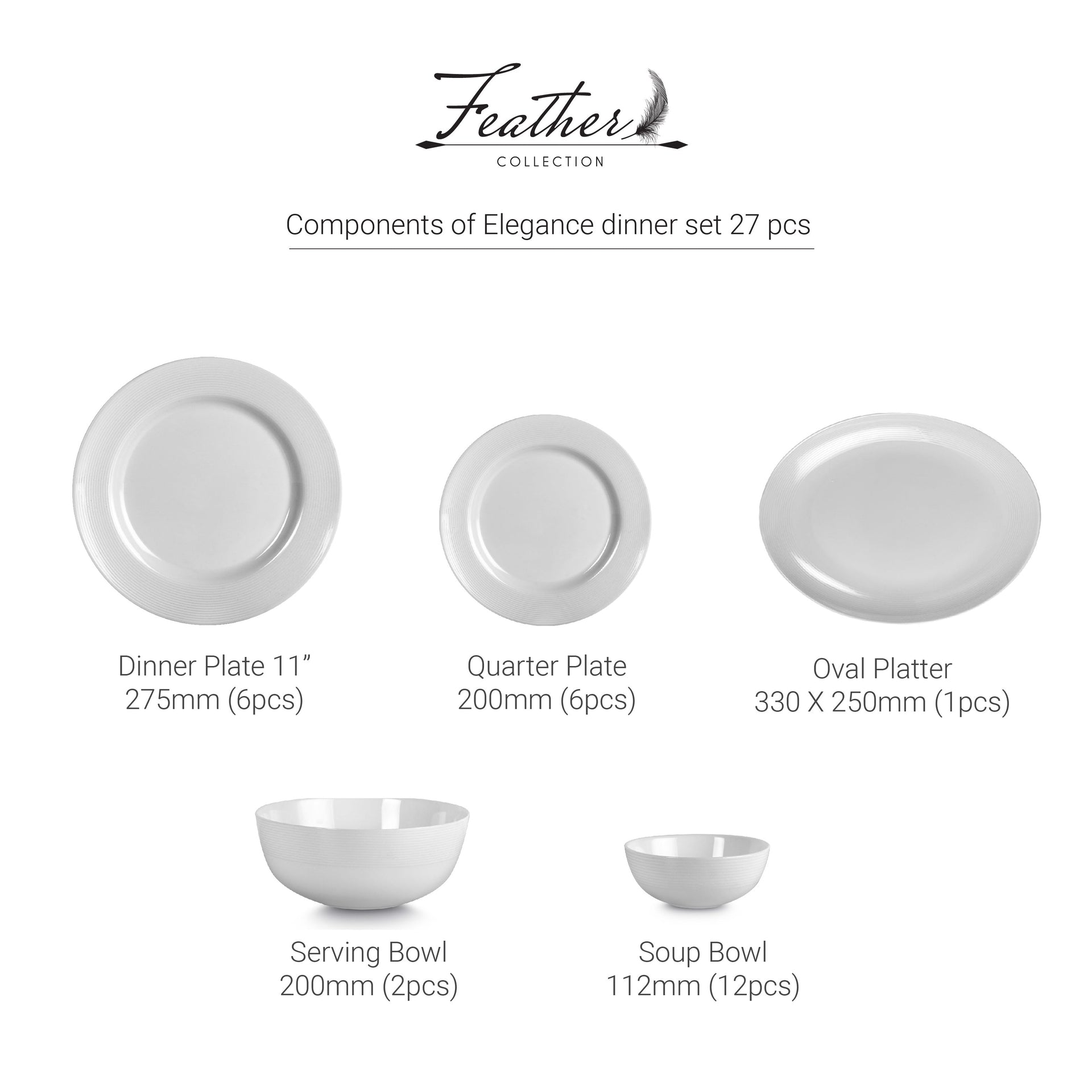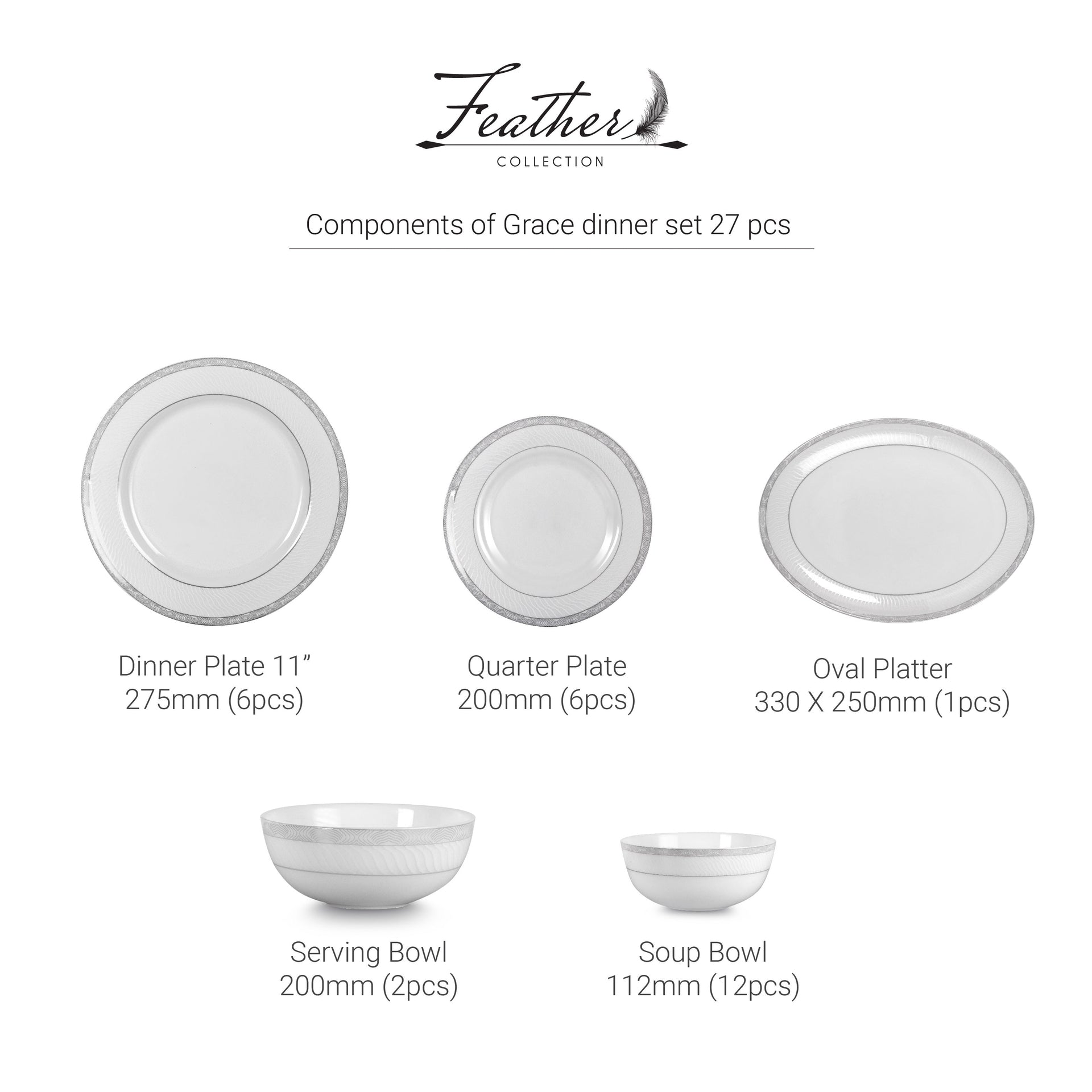 Feather Series 27 Pieces Opalware Dinner Set for Family of 6