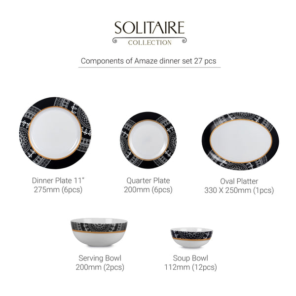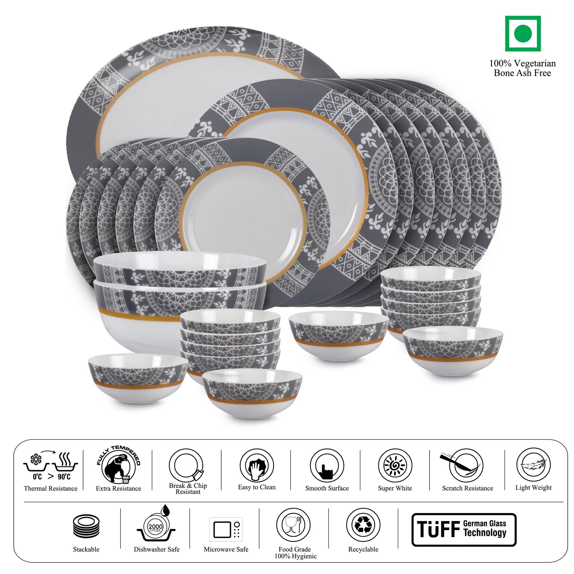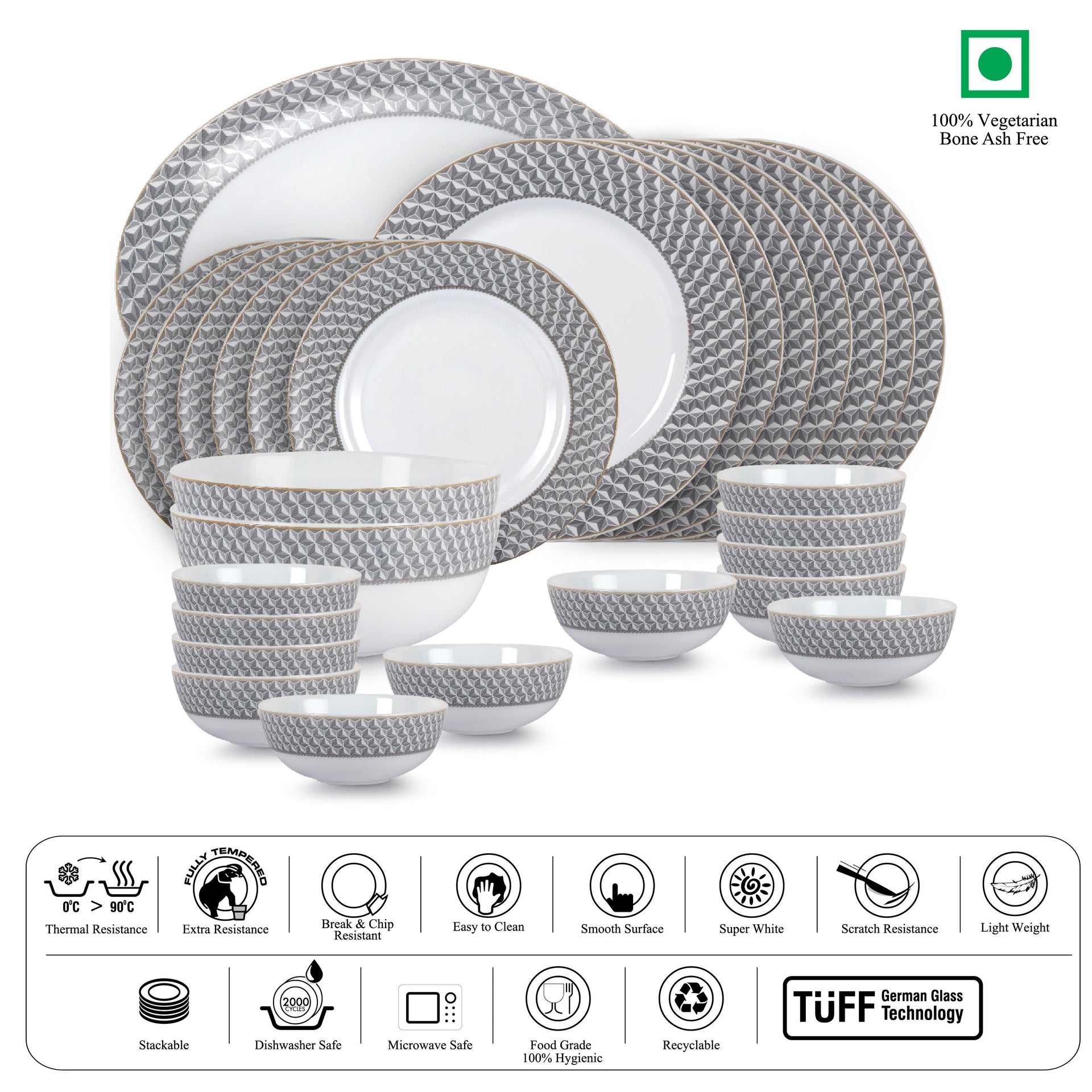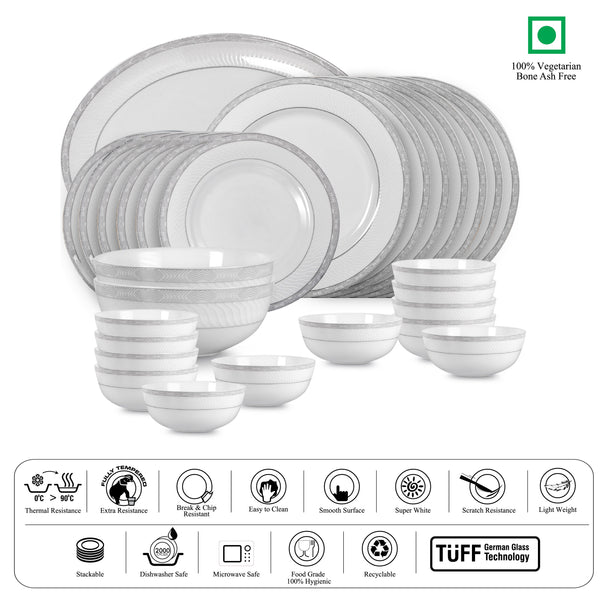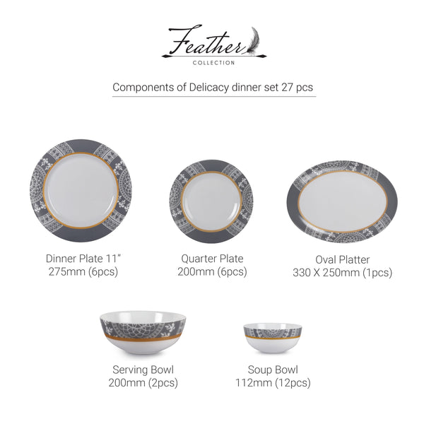 Feather Series 27 Pieces Opalware Dinner Set for Family of 6