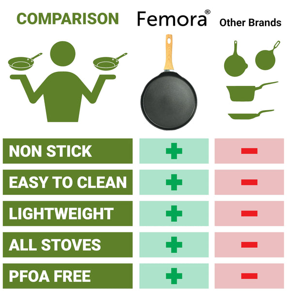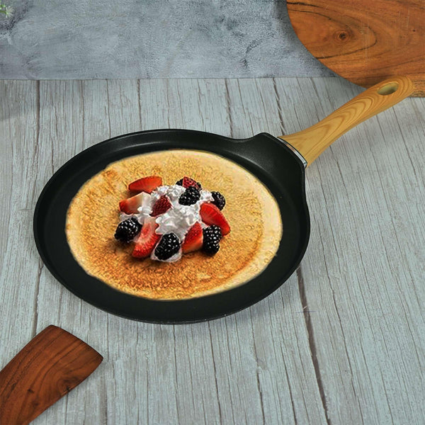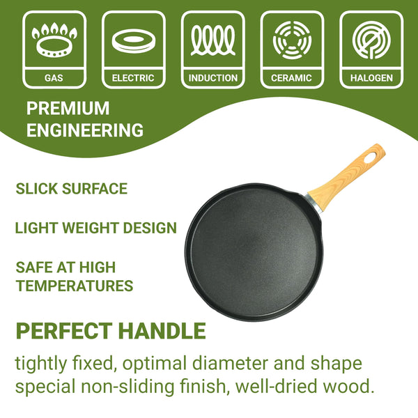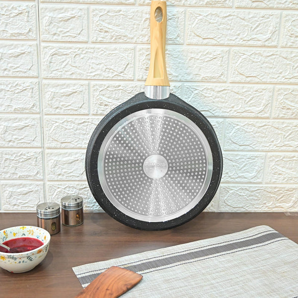 Femora Foged Die Cast Aluminium Non Stick 28 CM Roti Tawa with Wood Finish Handle, Granite Finish, Induction & Gas Ready, Pack of 1