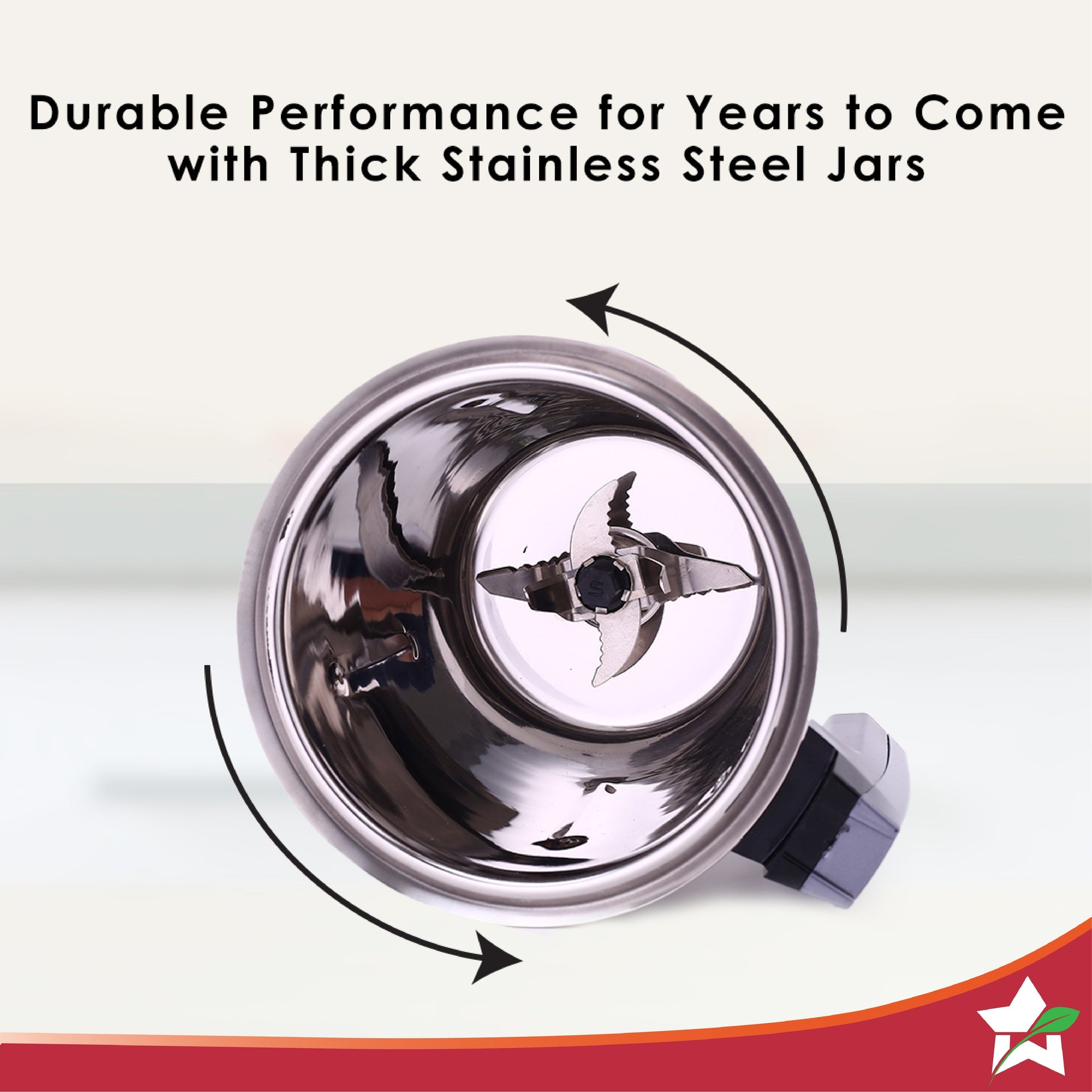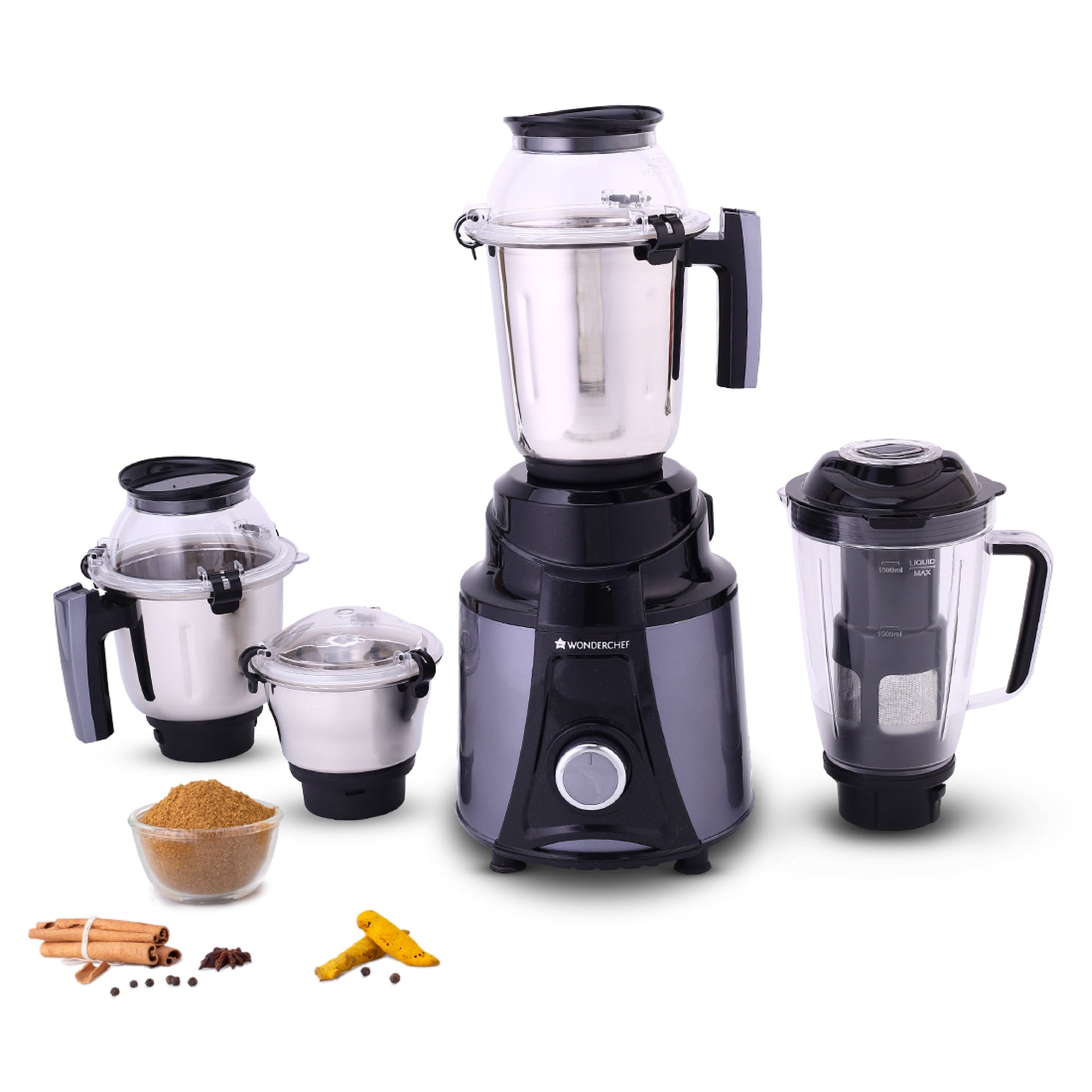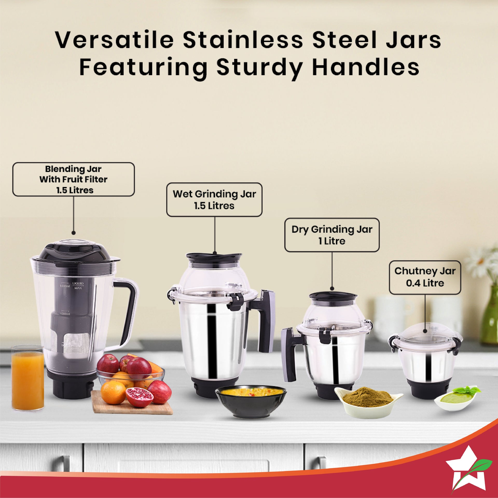 Galaxy Mixer Grinder 750W 100% Copper Motor, 4 Stainless Steel Jars, Black & Grey, 5 Years Warranty