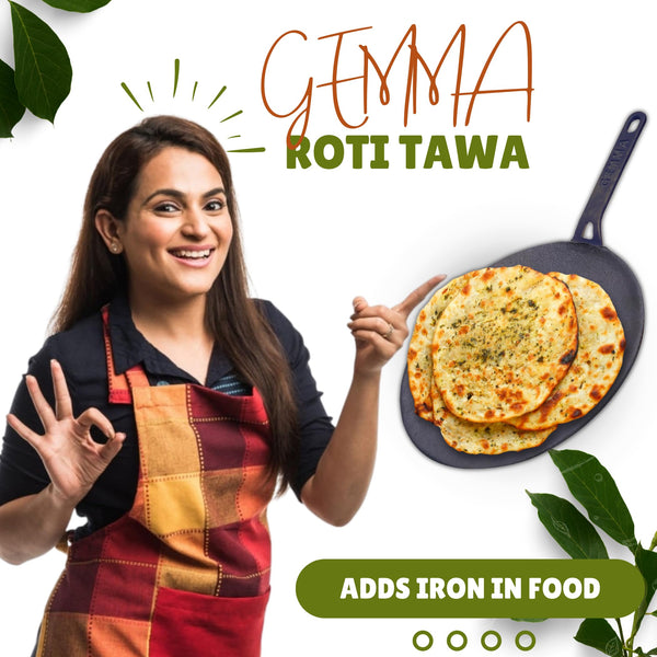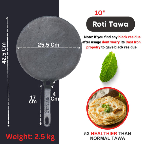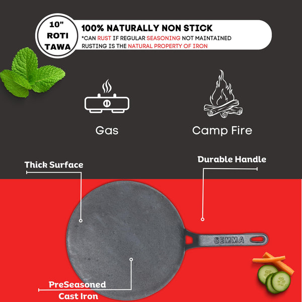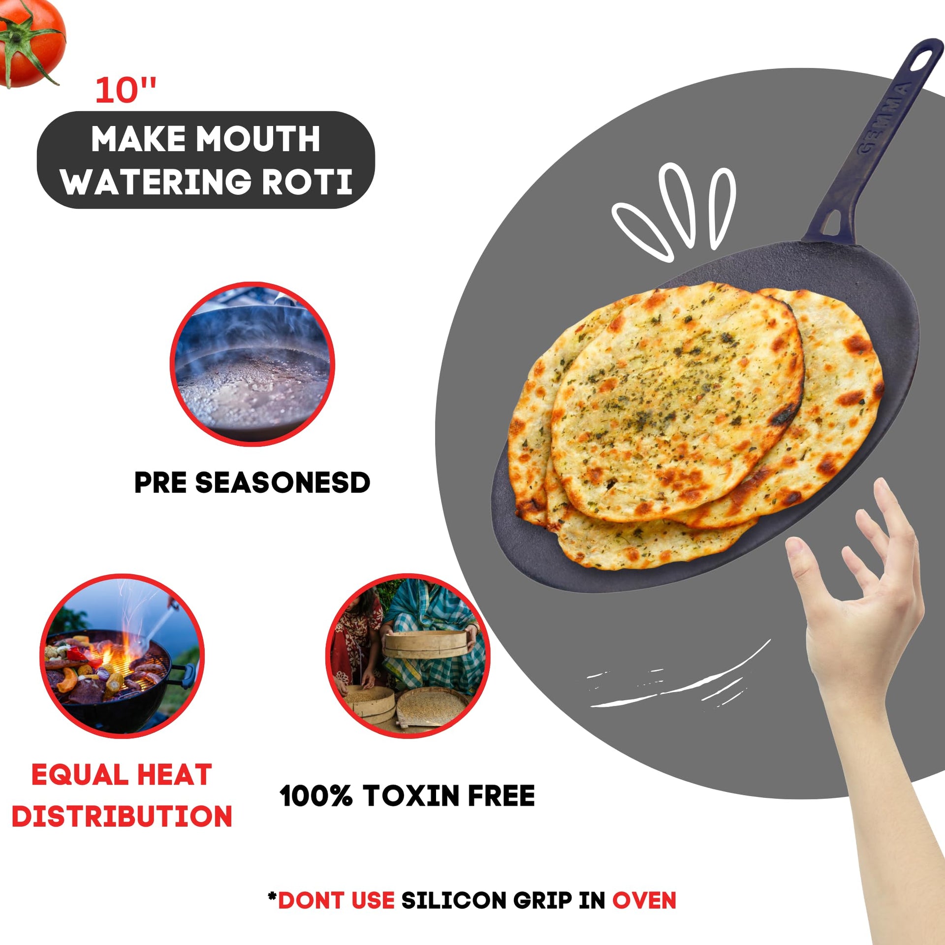 GEMMA Cast Iron Roti Tawa with Silicone Grip (Black Handle Roti Tawa)