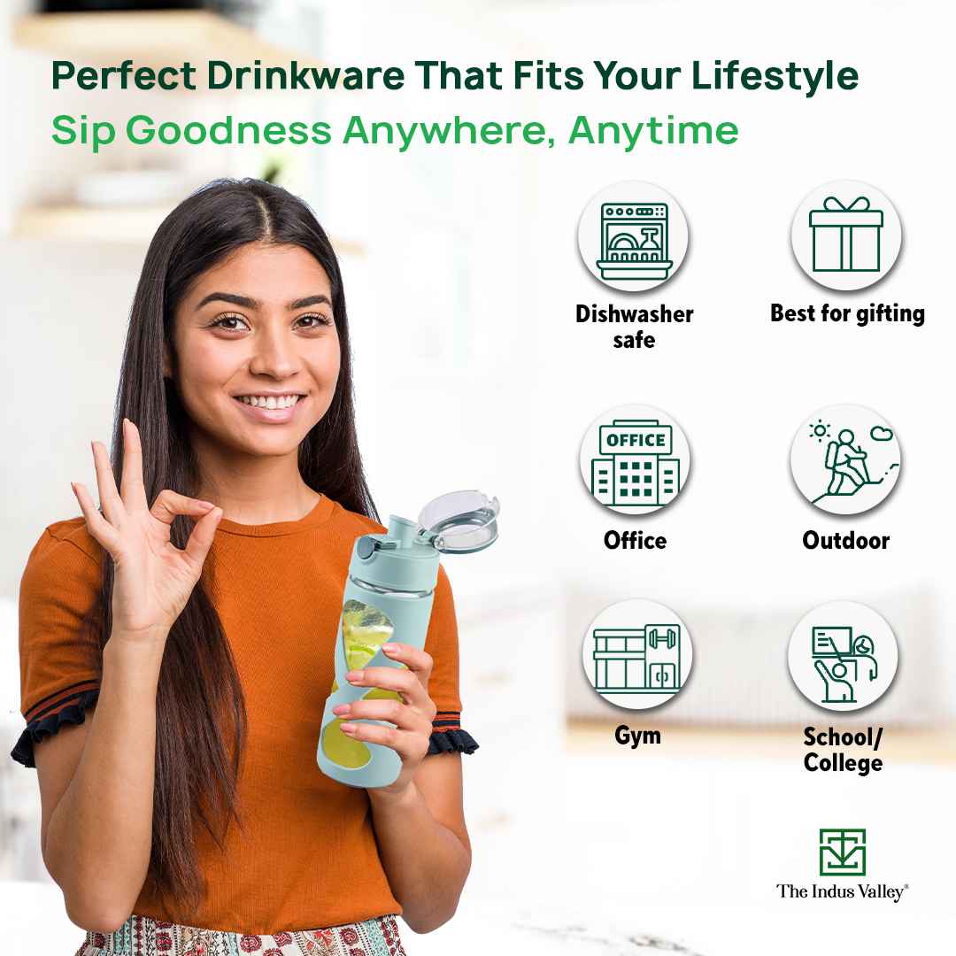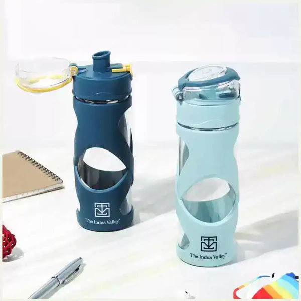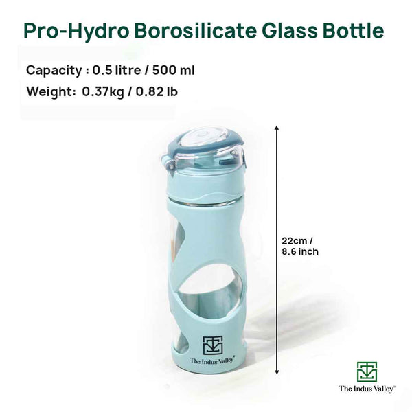 Premium Pro-hydro Borosilicate Glass Bottle | 500ml | Removable Filter | Dark blue, Light blue