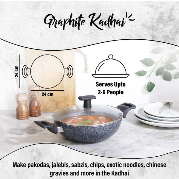 Graphite Kadhai with Lid 24 cm, 3 Years Warranty