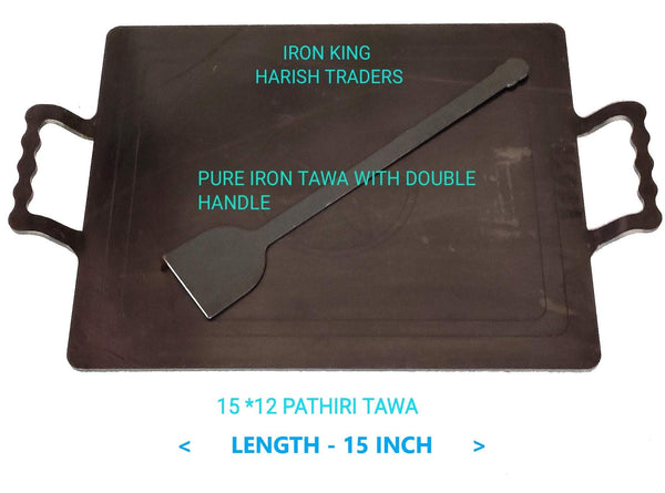 HARISH - Pure Iron Flat Rectangle - Dosa / Roti / Pathri Tawa With Double Side Handle, 15*12 (Black, 12 Inches)