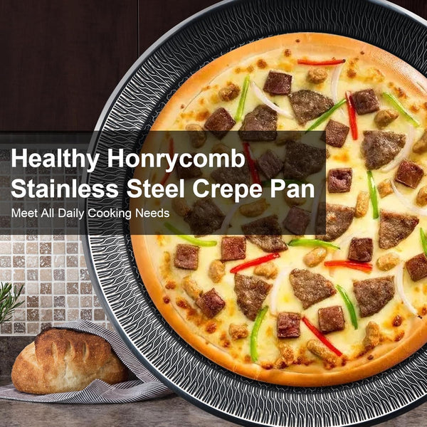 HaRvic Nonstick Crepe Pan Stainless Steel Crepe Pan, Honeycomb Coating Flat Skillet Tawa Dosa Tortilla Omelet Griddle Pan, Induction Compatible (28CM)