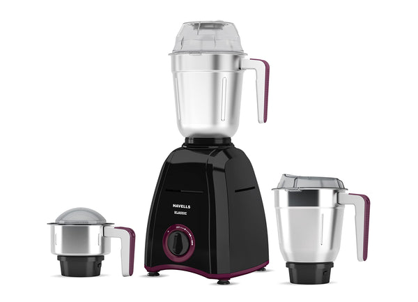 Havells KLASSIC 750W 3 Jar Mixer Grinder, 304 Rust Resistant SS Blades |Bigger Size Jars with break Resistant polycarbonate Transparent Lids with Hands free Twist & Lock Mechanism (Black)